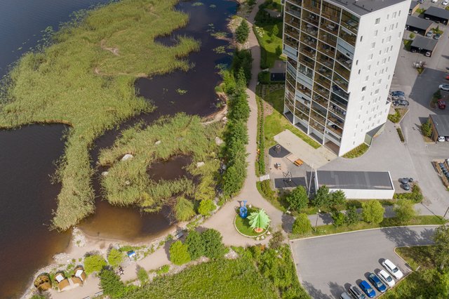 Sijainti rantaraitin varrella tarjoaa monipuoliset ulkoilu- ja liikuntamahdollisuudet niin kesällä, kuin talvellakin. Lisäksi uimaranta, ulkokuntosali ja lähikauppa sijaitsevat kaikki kivenheiton päässä.