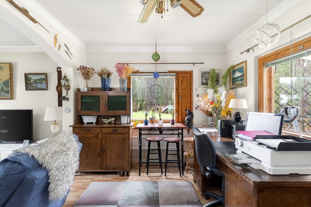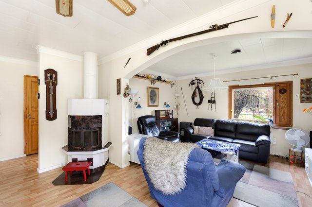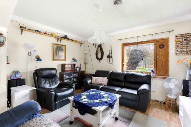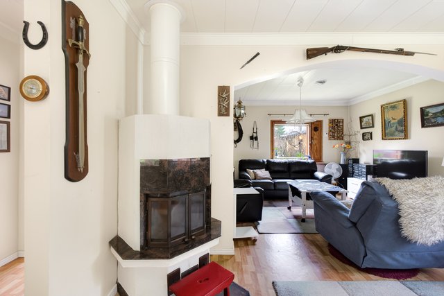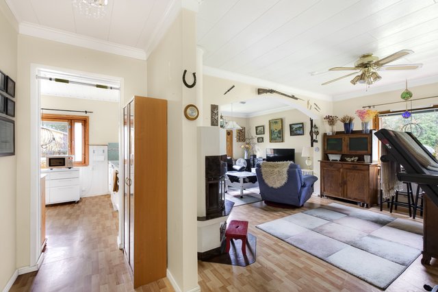 Asuintilaa on laajennettu alkuperäisestä, ja nykyinen asuinpinta-ala on noin 77 m². Talon sydämenä toimii tilava olohuone, jossa on varaava takka tuomassa lämpöä ja tunnelmaa. Erillisessä keittiössä on runsaasti kaappitilaa, makuuhuone on erikseen muista asuinhuoneesta ja siellä on mukavasti säilytystilaa sekä lattialämmitys.
