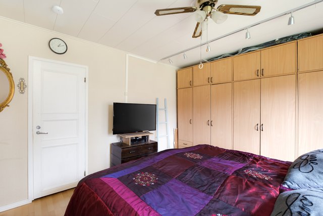 - Makuuhuone, jossa reilusti kaappitilaa. Makuuhuoneessa lattialämmitys (toimii hitaasti) Seinät: tapetti Lattia: laminaatti