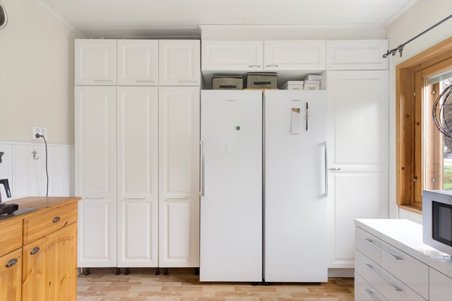 - Kodinhoitohuoneen vieressä lämmin varastotila/tekninen tila. Pihalla olevassa vajassa kylmää varastotilaa.