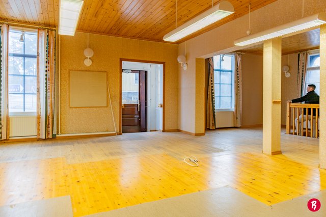 - historiallinen tunnelmallinen rakennus täynnä mahdollisuuksia. / Stämningsfull historisk byggnad fylld med möjligheter Pintamateriaalit: katto:puu+maalattu. seinät:tapetit+puolipaneeli. Lattiat:parketti Tak: trä+målade. Väggar:tapeter+halvpanel. Golv: parkett
