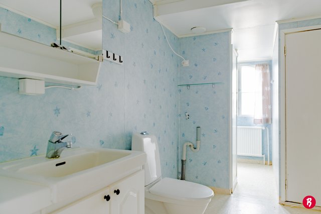 - WC-istuin, suihku, peilikaappi, peili, pesuallas, ja suihkukaappi