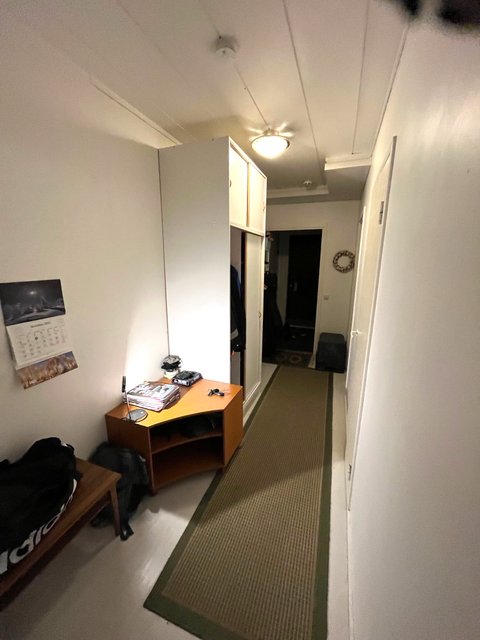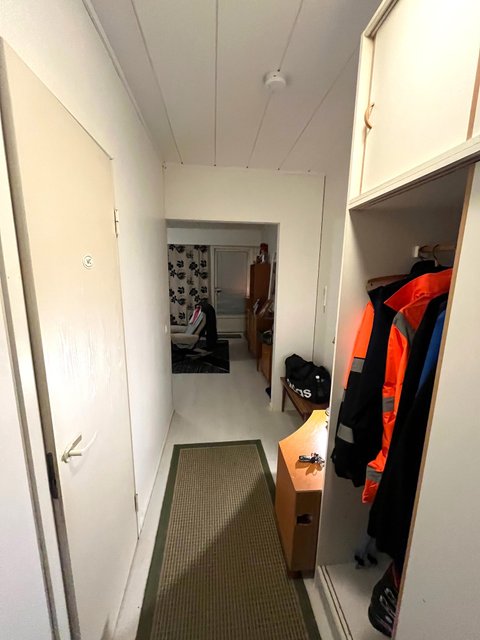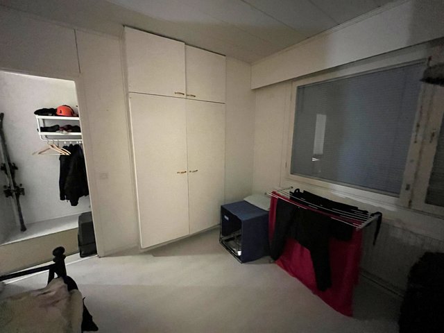 - Vaatekaapit. Ikkuna pohjoisen suuntaan (huone pysyy viileänä). Lattiassa laminaatti, seinät maalattu.