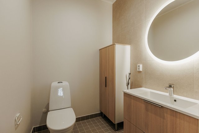 - WC-istuin, suihku, lattialämmitys, peili, ja allaskaappi