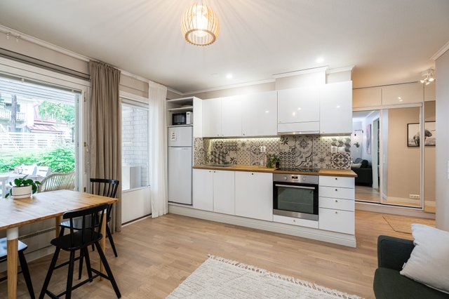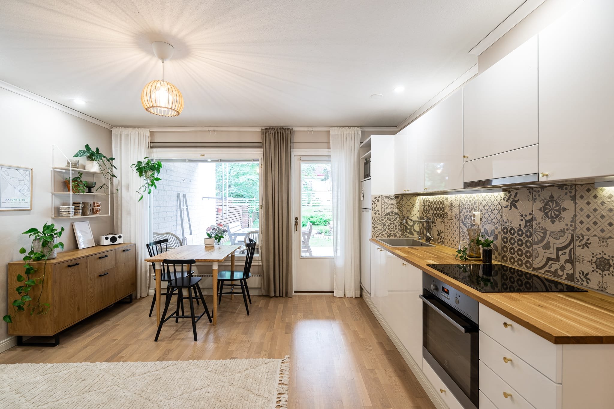 Suorastaan suloinen tämä kompakti rivitalokoti. Tyylillä remontoidussa kodissa jokainen neliö on hyötykäytössä. Hurmaava takapiha ja suojaisa oma terassi. Ikkunallinen sauna ja tilava juuri remontista valmistunut kylpyhuone. Erinomainen sijainti Hätilän palveluiden tuntumassa, tästä niin nopeasti junassa. Autolle oma pistokepaikka ja tavaroille varasto.