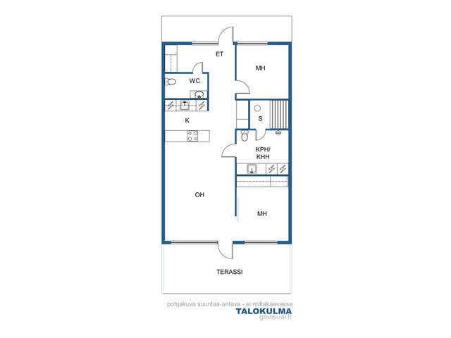 - Avara ja valoisa olohuone, josta käynti takapihan terassille ja nurmialueelle