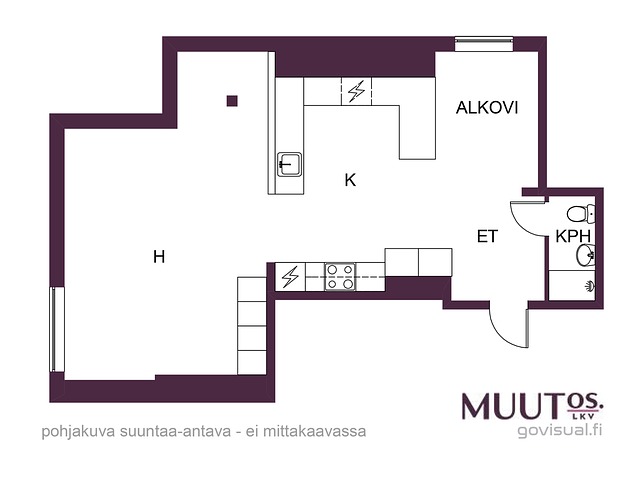 - Varustus: Jääkaappi/pakastin, astianpesukone (integroitu), uuni, induktioliesi, liesituuletin (suodatin). Lattiat lankku, seinät maalattu, katto paneli. Remontoitu 2010.
