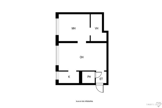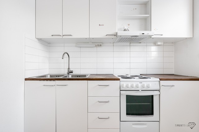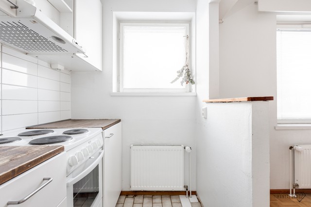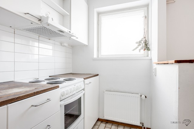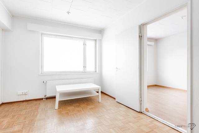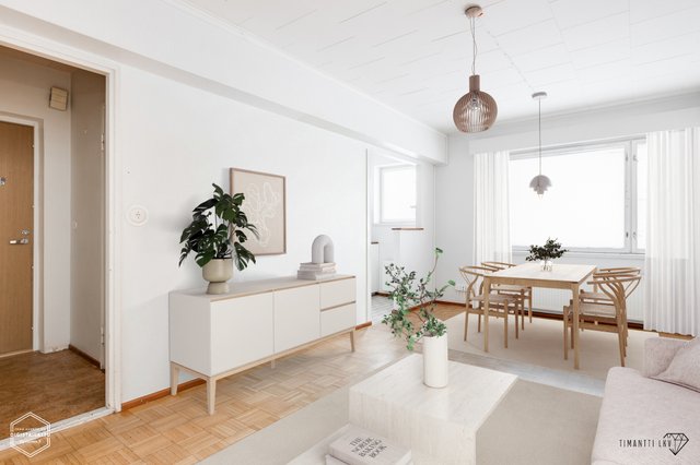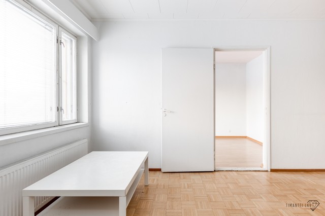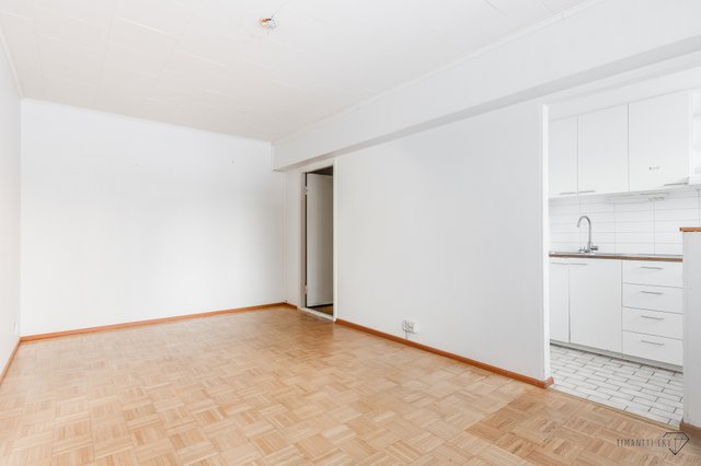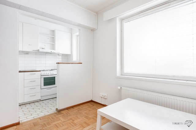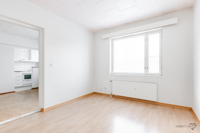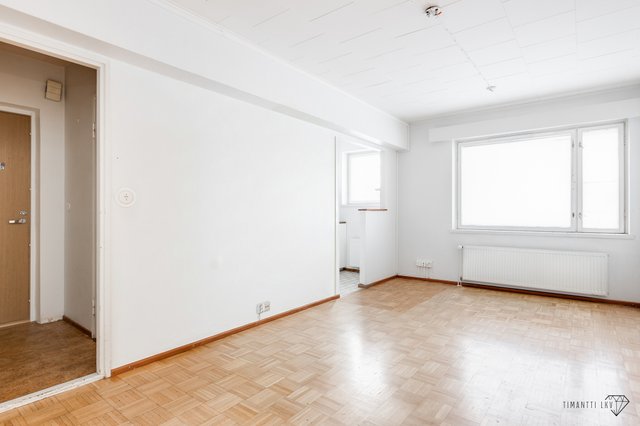 Valoisa kaksio, johon kuuluu olohuone, keittiönurkkaus, erillinen makuuhuone vaatehuoneella sekä eteinen, jonka vieressä kodin kylpyhuone. Tästä kodista saa juuri mieleisen asunnon huippu sijainnilla pintaremontin tekemällä.