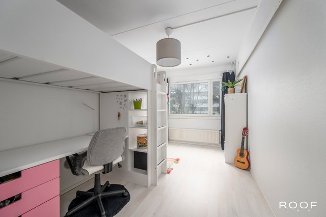 Toisessa kerroksessa sijaitseva viihtyisä päätyhuoneisto tarjoaa rauhallista asumista ja valoa koko päivän. Läpitalon huoneistossa on ikkunat molemmin puolin, ja olohuoneesta on käynti lasitetulle parvekkeelle. Sisäänkäynnin vierestä löytyy tilava vaatehuone, ja käytävällä on kaapisto peililiukuovilla.