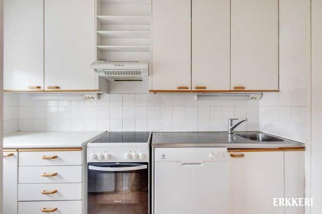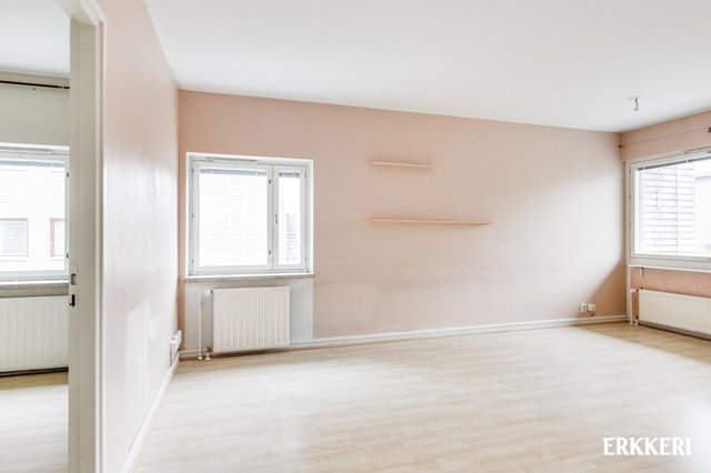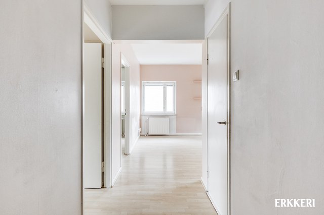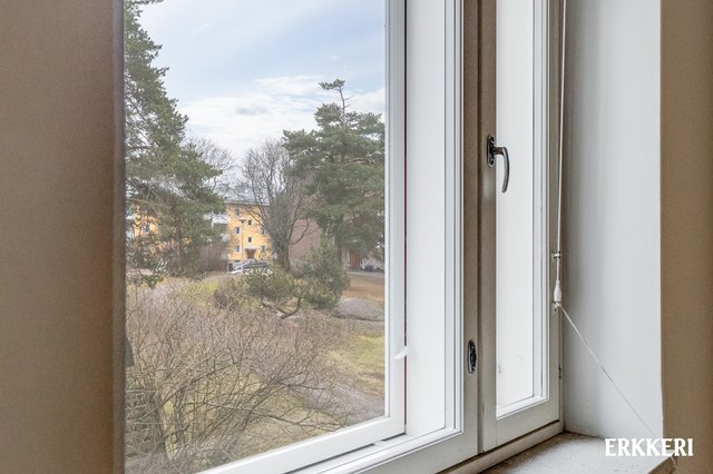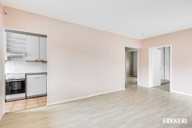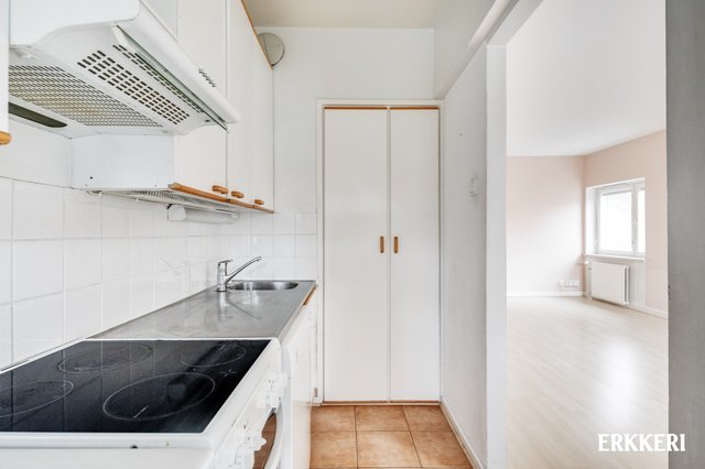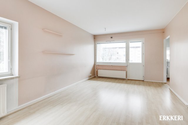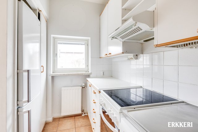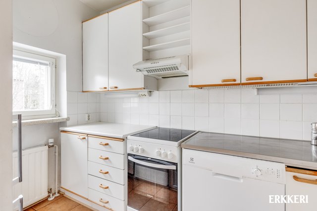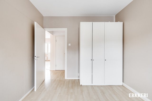 - Laminaattia olohuone ja makuuhuoneet, keittiö ja eteinen laattalattia.