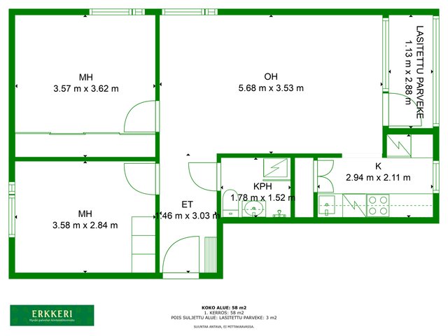- Yhtiöjärjestyksen mukainen, (Pinta-ala ei ole tarkistusmitattu ja todellinen pinta-ala voi olla suurempi tai pienempi, kuin ilmoitettu)
