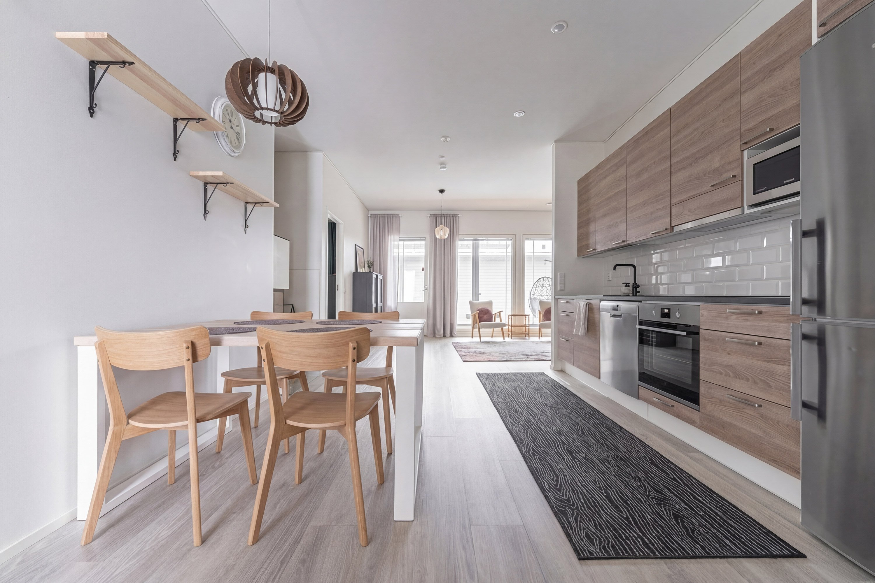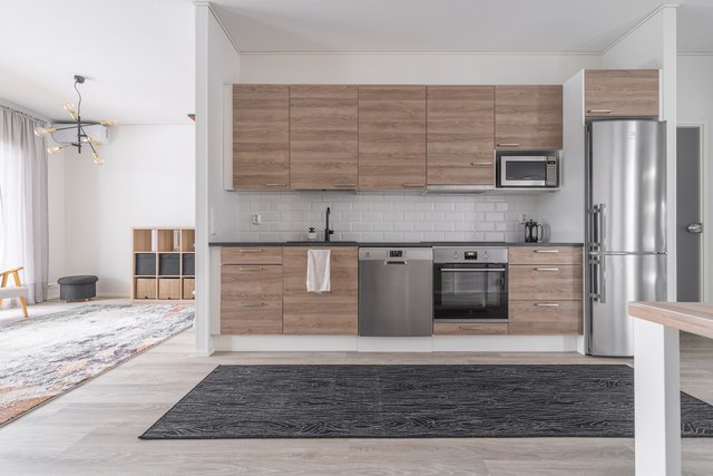 - Jääkaappipakastin, liesituuletin, ja astianpesukone