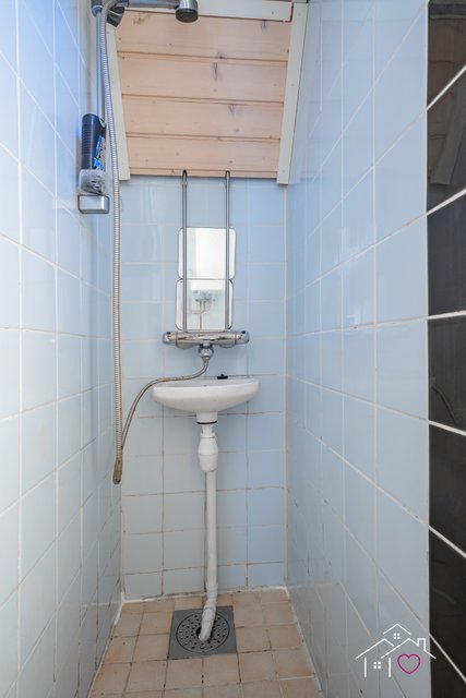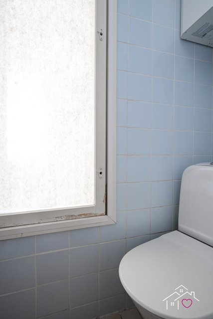 - Ikkunallisen laatoitetun wc:n yhteydessä on suihku. Tilassa on suihkun alla käsienpesuallas, vesivaraaja wc-istuimen yläpuolella, sähköinen poistoilmapuhallin. Lattialämmitys sähköllä.