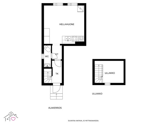 hellahuone,kph/wc,et + säilytystila yläkerrassa