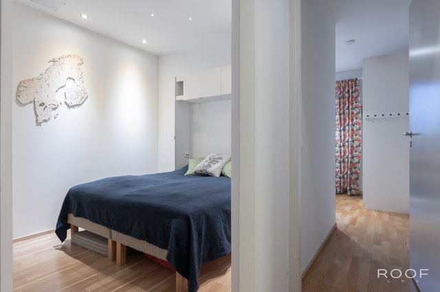 Asunnossa on kaksi makuuhuonetta + alkovi, mikä tarjoaa lisää tilaa ja mahdollisuuksia isommalle perheelle.