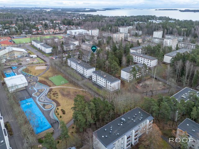 Asunto-osakeyhtiön naapurissa on moderni ja viihtyisä asukaspuisto, jossa on tekemistä eri-ikäisille lapsille. Läheltä löytyvät päiväkodit, peruskoulut ja lukio, mukaan lukien ruotsinkielinen lukio, tekevät tästä alueesta ihanteellisen lapsiperheille. Iso Omena -kauppakeskus ja metroasema ovat kävellen vain 800 metrin päässä, mikä takaa erinomaiset palvelut ja liikenneyhteydet.