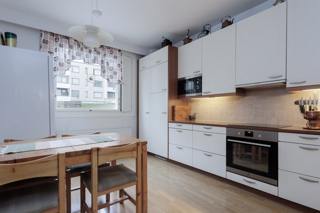- Jääkaappipakastin, uuni, liesi, liesituuletin, ja astianpesukone