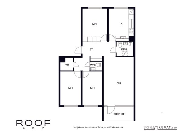 - Huoneiston pinta-ala on yhtiöjärjestyksen, isännöitsijäntodistuksen ja myyjän ilmoituksen mukaan 91,00 m2. Pinta-alaa ei ole tarkistusmitattu. Edellä mainittu pinta-ala saattaa tämän ikäisessä kohteessa poiketa olennaisestikin huoneiston nykyisen ja rakentamisaikaisen mittaustapojen ja standardien mukaan laskettavasta pinta-alasta. Huoneiston todellinen pinta-ala voi siis olla yhtiöjärjestyksessä, isännöitsijäntodistuksessa ja esitteessä mainittua pienempi tai suurempi.