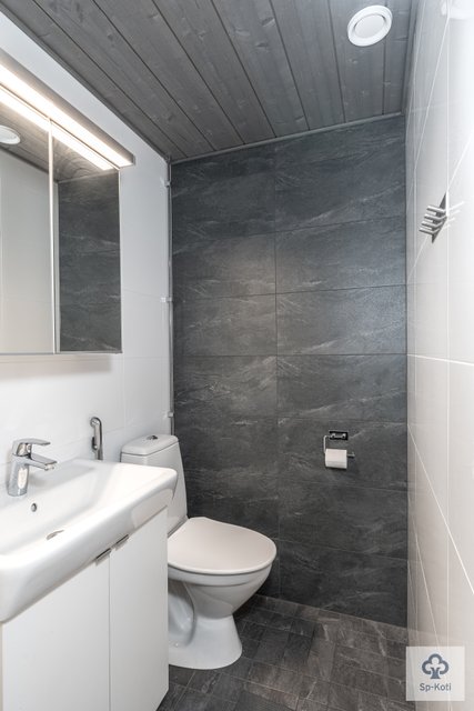 - Suihku, suihkuseinä, lattialämmitys, ja pesukoneliitäntä