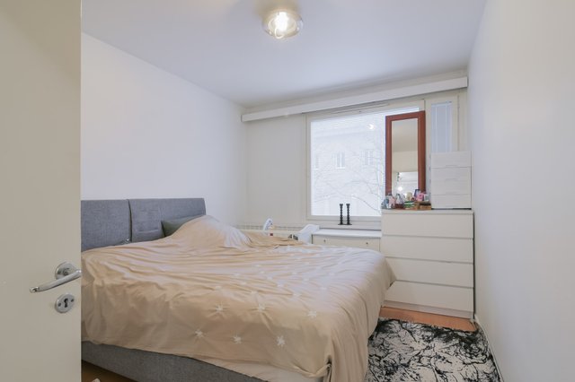 - Keittiöstä ja makuuhuoneesta näkymä Aleksanterinkadulle ja olohuoneesta ja parvekkeelta taloyhtiön sisäpihalle