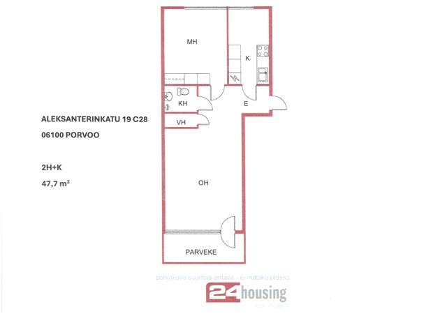 Porvoon keskustassa sijaitsevan hissikerrostalon 2/4 kerroksen parvekkeellinen siisti 47,7 m2 kaksio.