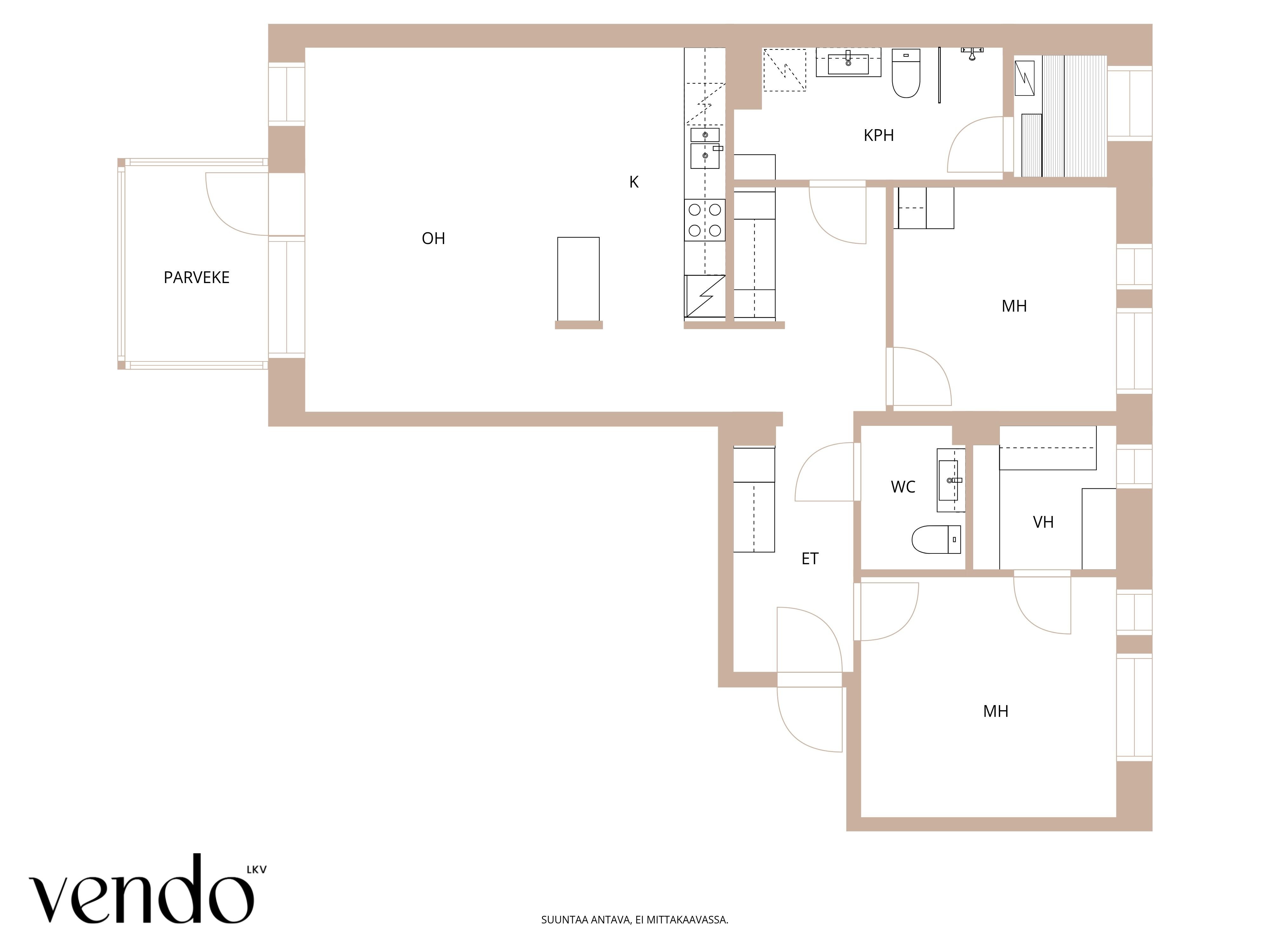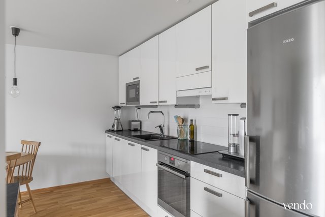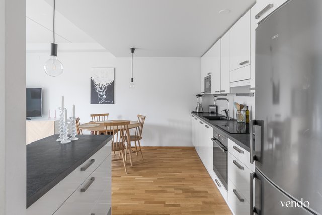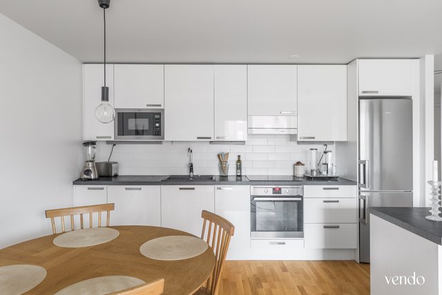 - Jääkaappipakastin, liesi, liesituuletin, astianpesukone, ja keittiösaareke