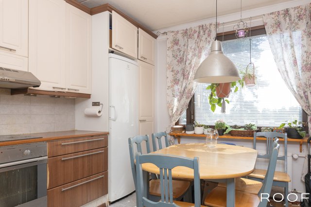 - Lattia:parketti Seinä:kaakeli Varustus: tiskikone,jääkaappipakastin,liesituuletin,induktioliesi,kaapistot,hana,allas