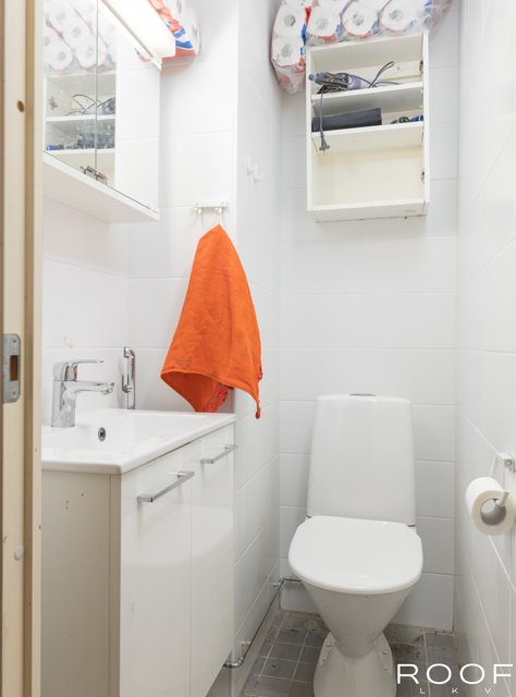 - Seinä:kaakeli Lattia:kaakeli Varustus: pidee, wc-istuin, kaapisto