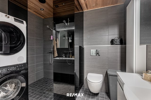 - WC-istuin, suihkuseinä, 2xsuihku, bidee-suihku, peilikaappi, pesuallas, allaskaappi, ja pesukoneliitäntä