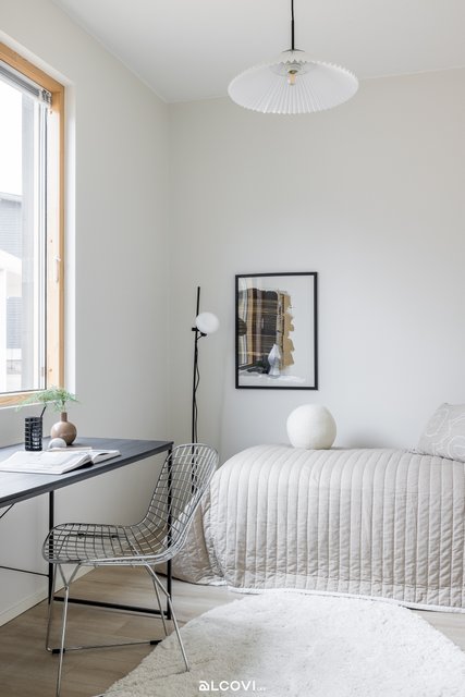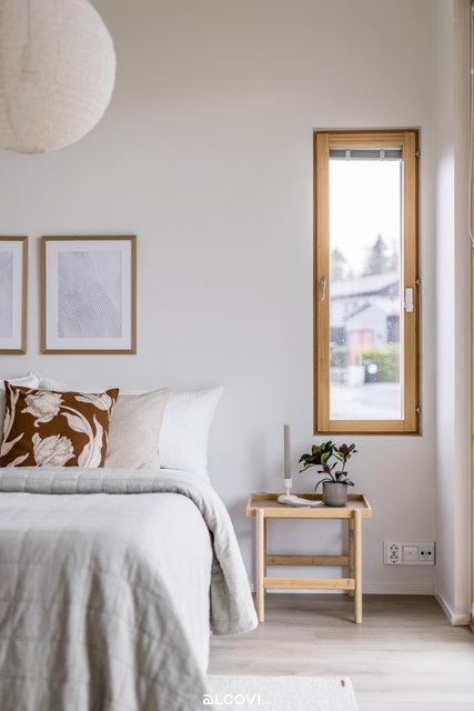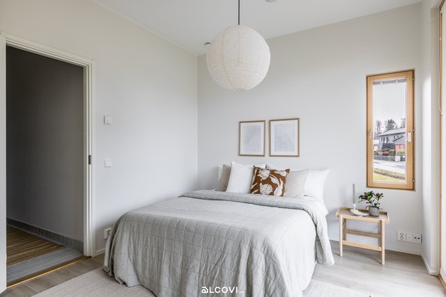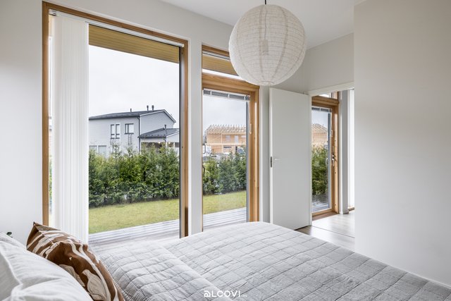- Makuuhuoneita on 2 kpl. Lattiat on laminaattia (Trendy Pro Beige Oak), seinät maalatut. Lattialämmitys (vesikiertoinen). Päämakuuhuoneesta kulku kodinhoitohuoneeseen ja terassille.