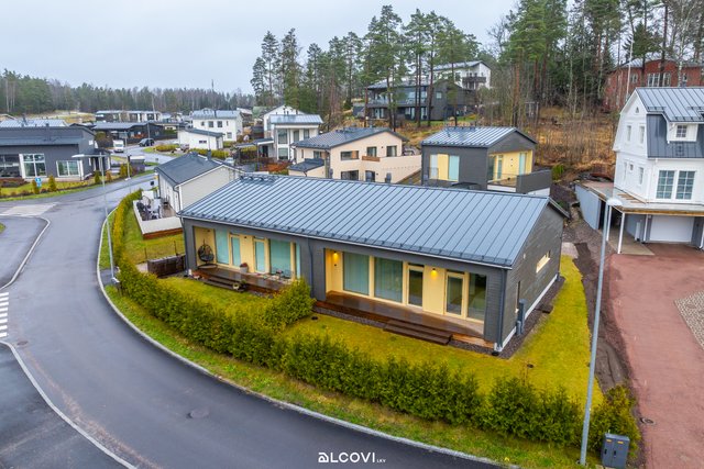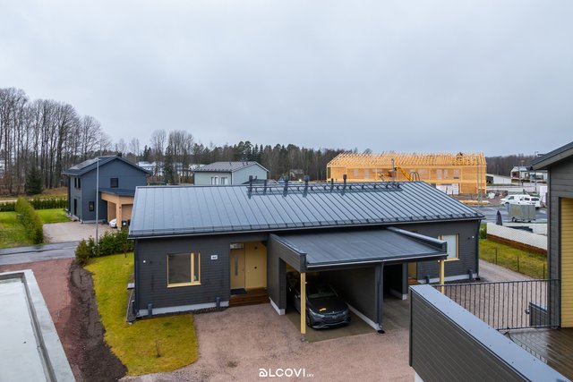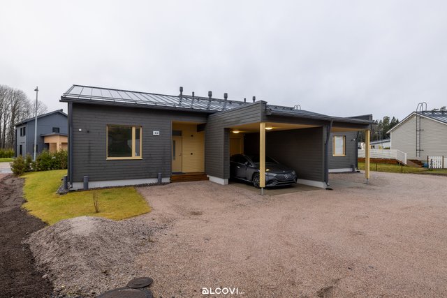 Lämmitysmuotona poistoilmalämpöpumppu on energiatehokas valinta, ja ilmalämpöpumppu viimeistelee asumisen mukavuuden. Tämä vuonna 2023 valmistunut koti on kiinteistömuotoinen. Asumiskustannukset ovat kohtuulliset (tonttivuokra vain 240 e/kk), ja uudenkarhean kiinteistön omistaminen vaivatonta. Tonttia hallitaan hallinnanjakosopimuksella yhdessä naapureiden kanssa.