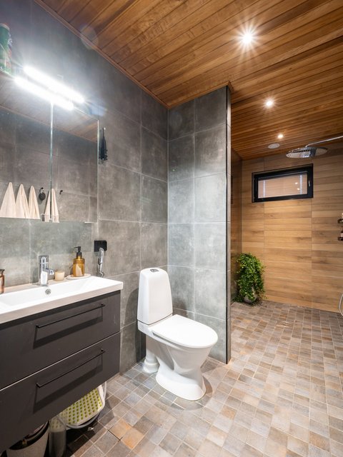 - WC-istuin, suihku, lattialämmitys, ja pesuallas
