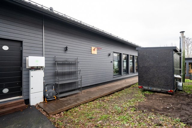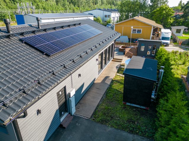 Lämmityksestä huolehtii poistoilmalämpöpumppu vesikiertoisen lattialämmityksen kanssa. Aurinkopaneelit katolla ovat tuottaneet noin 8000 kwh/vuosi, joten peruskäytöllä ostoenergiaa on kulunut vain noin 5000 kwh/vuosi. Poistoilmalämpöpumppu huolehtii myös viilennyksestä tarpeen tullen.