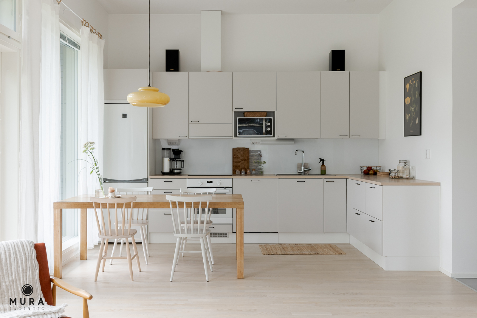 Tässä asunnossa on loistava pohjaratkaisu ja neliöt on käytetty tehokkaasti. Asunto tuntuu kokoaan isommalta ja toki yksitasoisuus tekee asunnosta hyvin toimivan ja avaran. Normaalia korkeampi huonekorkeus vaikuttaa merkittävästi lisäten asunnon valoisuutta ja tilan tuntua. Materiaalit ovat kauttaaltaan tyylikkäät ja laadukkaat. Lämmönlähteenä tässä asunnossa on maalämpö ja koko asunnossa on vesikiertoinen lattialämmitys. Kesähelteitä varten asuntoon on asennettu ilmalämpöpumppu, joten kuumuutta ei tarvitse pelätä. Asunnon kaunis takapiha on helppohoitoinen ja hyvänkokoinen!
