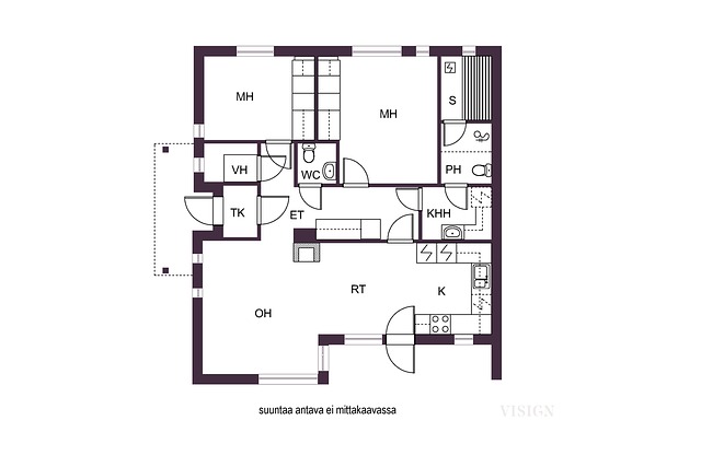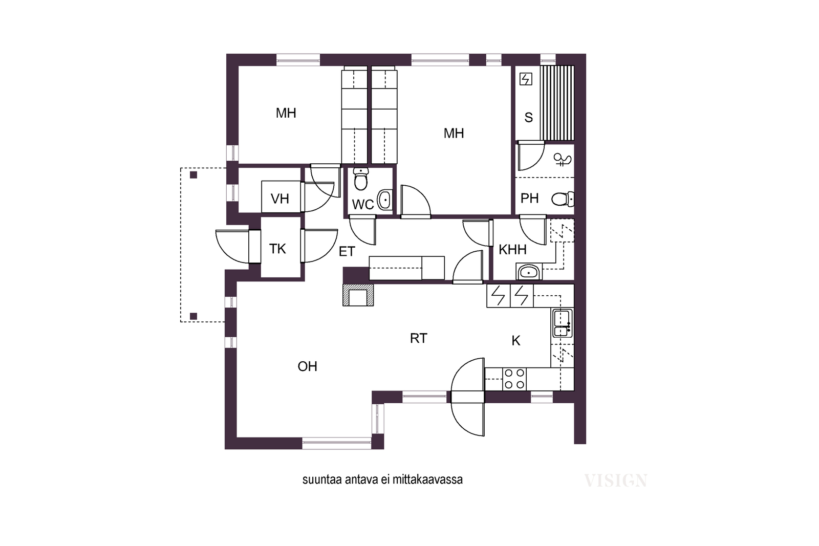 3h, avokeittiö, kph, s, khh, erillinen wc, vh