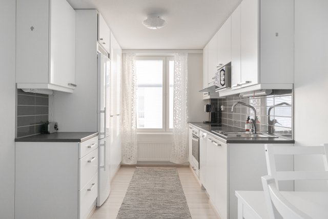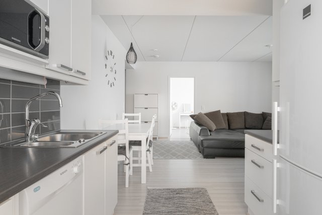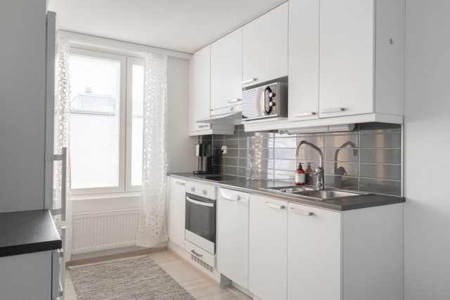 - Jääkaappipakastin, liesi, erillisuuni, liesituuletin, ja astianpesukone