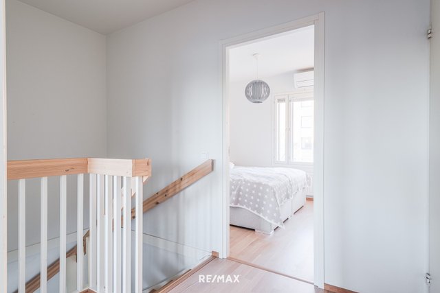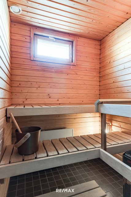 Yläkerrassa sijaitsevat kolme makuuhuonetta, joissa kaikissa on kiinteät kaapistot. Tilat mukautuvat hyvin niin perheen makuuhuoneiksi, työtiloiksi kuin vierashuoneiksi. Kylpyhuoneessa on lattialämmitys ja saunassa Harvian sähkökiuas, joka tarjoaa rentouttavia hetkiä arjen keskellä.