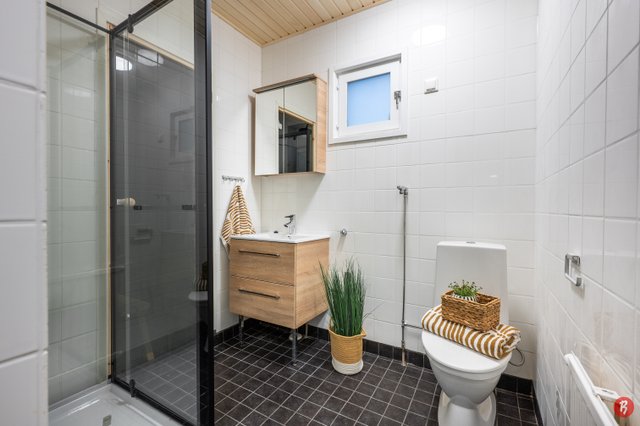 - Kylpyhuoneen ja saunan lattia on uusittu ja vesieristetty vuonna 2012 Kalusteet uusittu 2025 Kylpyhuoneen kalusteet: wc-istuin ja suihkukaappi Kylpyhuoneen katto uusittu nyt (haapapaneelia), kaakeleiden saumat uusittu, sauna pintakäsitelty