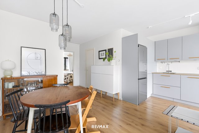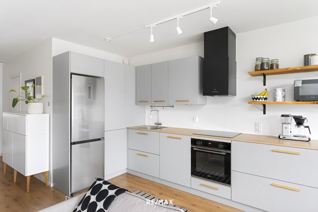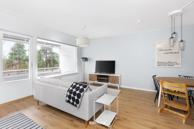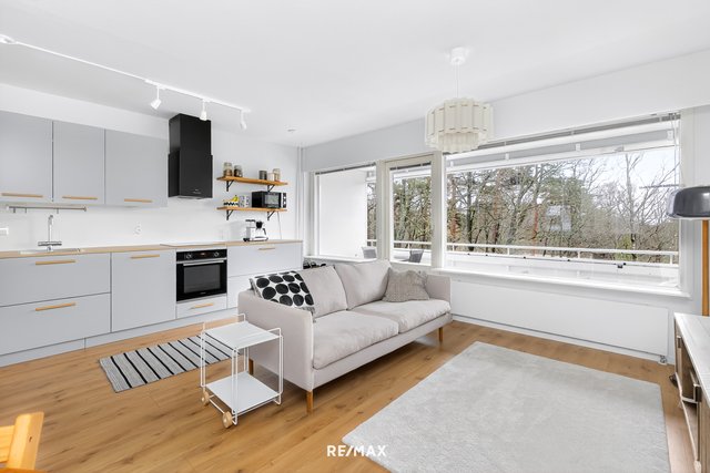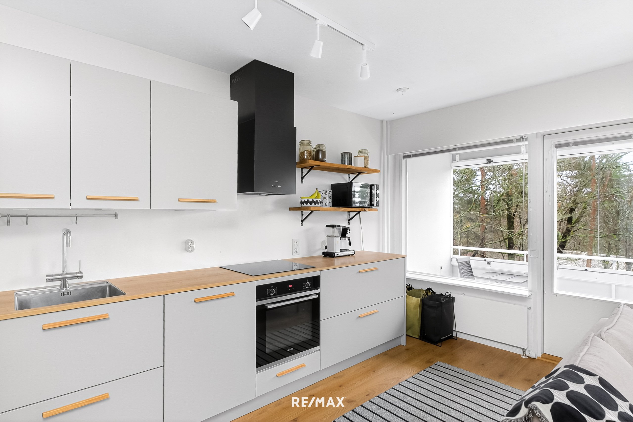 Asunto on hyvässä kunnossa ja moderni Kvikin avokeittiö on uusittu vuonna 2020. Keittiö ja olohuone ovat yhtä suurta tilaa ja ruokapöydän paikan voi valita mielensä mukaan. Olohuone avautuu etelään suuntautuvalle lasitetulle parvekkeelle.