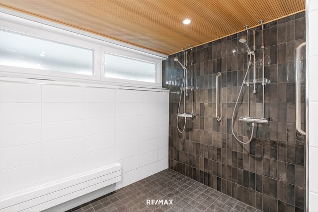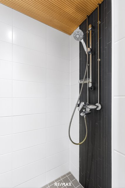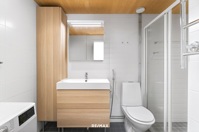- Uusittu vuonna 2011. Kylpyhuoneessa suihku, liukuovi-suihkukaappi, peilikaappi, allaskaappi, kylpyhuonekaappi, wc-istuin. Pesukoneliitäntä, pyyheteline. Seinät ja lattiat laatoitettu, mukavuuslattialämmitys ja seinäpatteri. Kylpyhuonekaapistot/kalusteet uusittu 2023. (ilmanvaihtoon lisäpuhallin kosteuden poistoon).