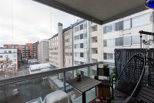 Tilava olohuone yhdistyy saumattomasti keittiöön, jossa on kaikki tarvittavat kodinkoneet, kuten jääkaappipakastin ja astianpesukone. Parvekkeelta avautuvat näkymät kutsuvat nauttimaan aamukahvit auringonpaisteessa. Asunnossa on myös oma sauna, joka tarjoaa rentouttavia hetkiä kiireisen päivän päätteeksi.