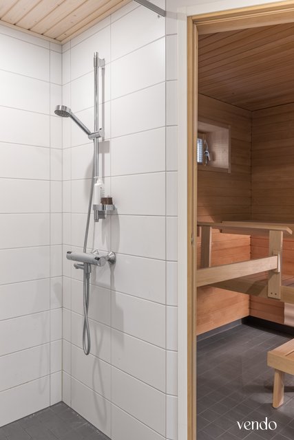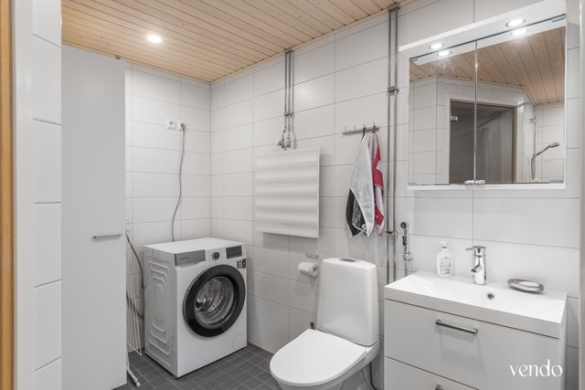 - Suihku, pesukoneliitäntä, peilikaappi, allaskaappi, bidee-suihku, ja wc-istuin