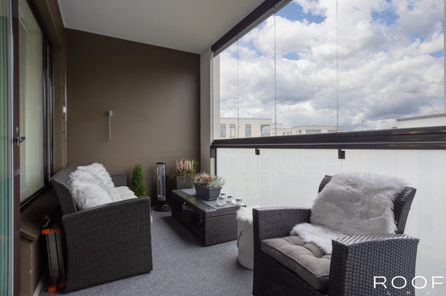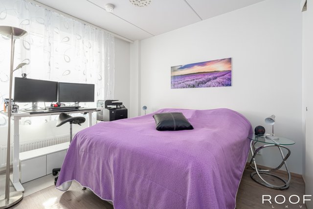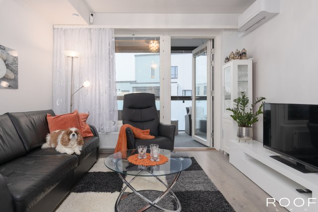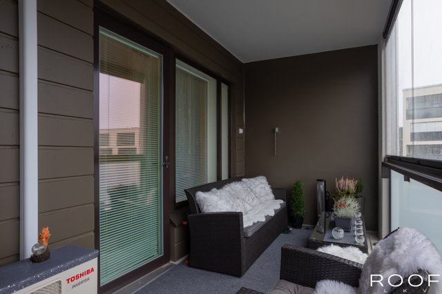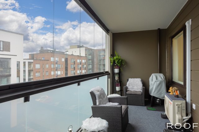 Asunnon sydän on lasitettu, auringonsuojaverhoin varustettu parveke, jossa nautit aamukahvit jo varhain keväällä ja jatkat iltoja pitkälle syksyyn. Makuuhuoneen yhteydessä oleva reilunkokoinen vaatehuone pitää arjen siistinä ja tavarat järjestyksessä. Kuumina kesäpäivinä asumismukavuutta lisää viilentävä ilmalämpöpumppu.