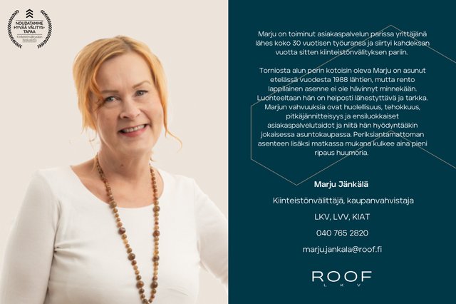 Tätä asuntoa myy Marju Jänkälä, Kiinteistönvälittäjä, LKV, LVV, KiAT, Kaupanvahvistaja