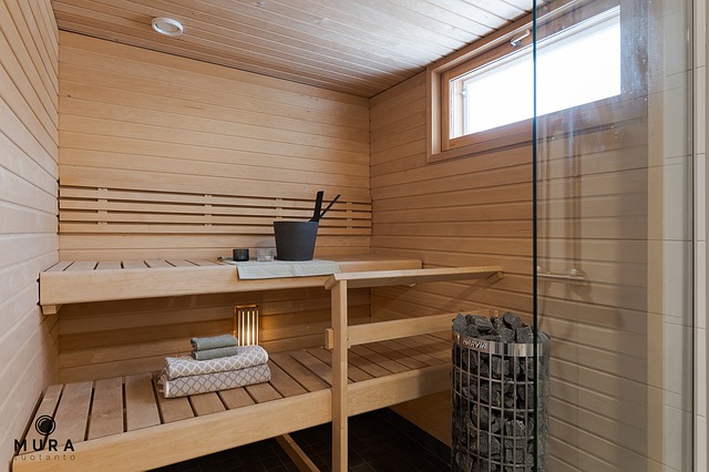 - Tyylikäs lasiseinäinen sauna, jossa Harvian pylväskiuas