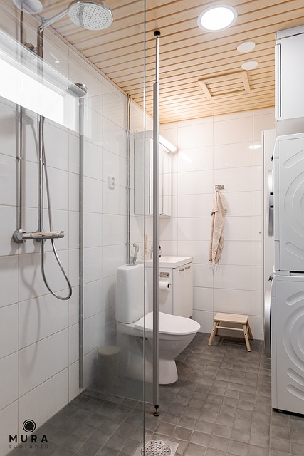 - Kaakeloidut pesu/ kodinhoitotilat, jossa suihku, suihkuseinä, wc-istuin, paikka pesutornille, allas, allaskaappi, peilikaappi, pyykkikaappi