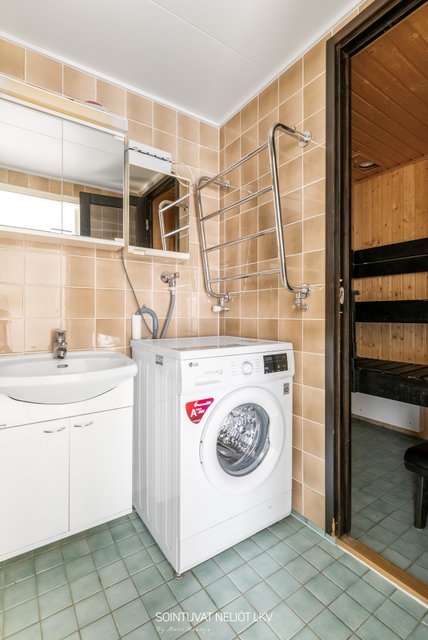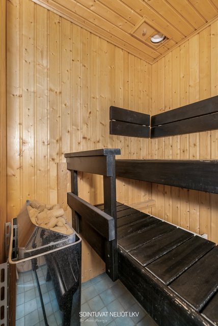Reilunkokoisen kylpyhuoneen yhteydessä on sauna, jossa on mukava rentoutua päivän päätteeksi. Lämpimästi tervetuloa tutustumaan tähän viihtyisään kotiin!