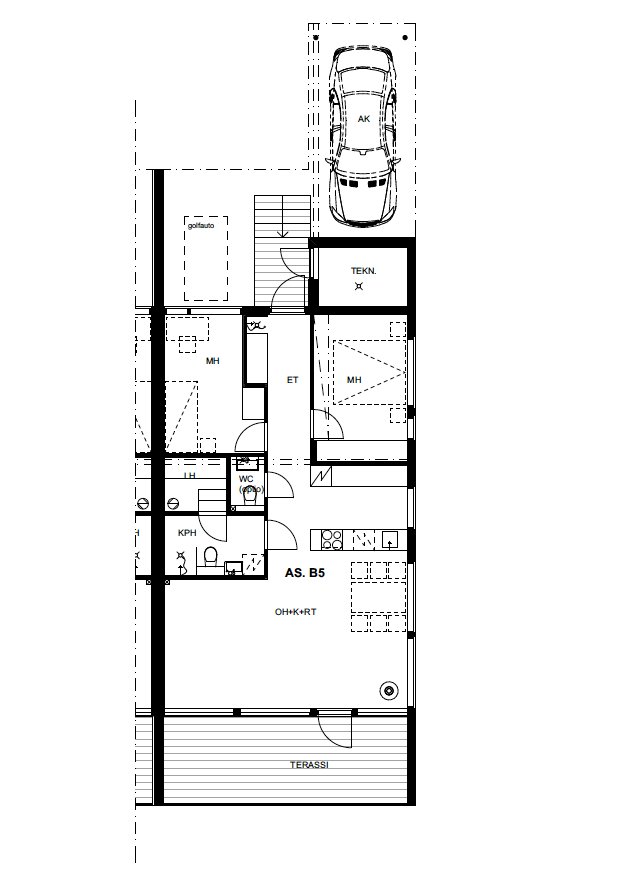 - Autopaikoitus toteutetaan asuntojen yhteyteen ja osa paikoista on katettuja, sekä lisäksi golf-autolle on varattu oma paikkansa.