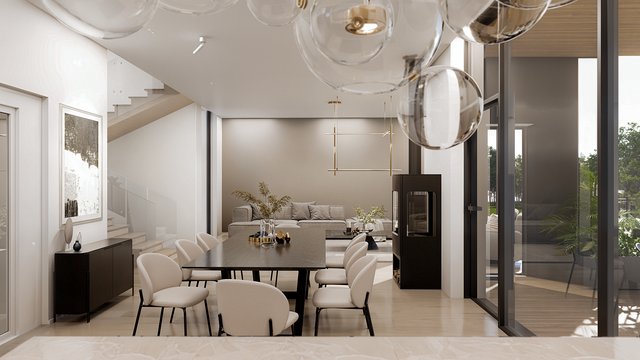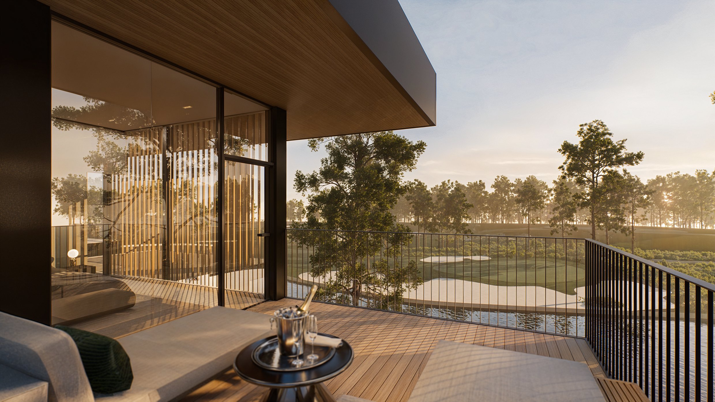 Tämän kolmikerroksisen talon sisätilat ovat avarat ja valoisat – korkeat tilat, vahva vuorovaikutus sisä- ja ulkotilojen välillä sekä upeat, kehystetyt näkymät. Rakennukset ovat sulkeutuneempia kadun suuntaan pohjoiseen. Idässä näkyy Pickala Golfin Forest-kenttä. Etelässä ja lännessä avautuu avarat ja pitkät näkymät upealle Rock-kentälle.