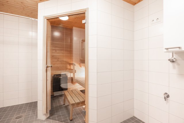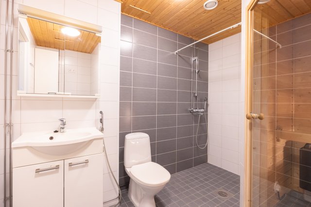 - WC-istuin, allaskaappi, bidee-suihku, peilikaappi, ja pesukoneliitäntä